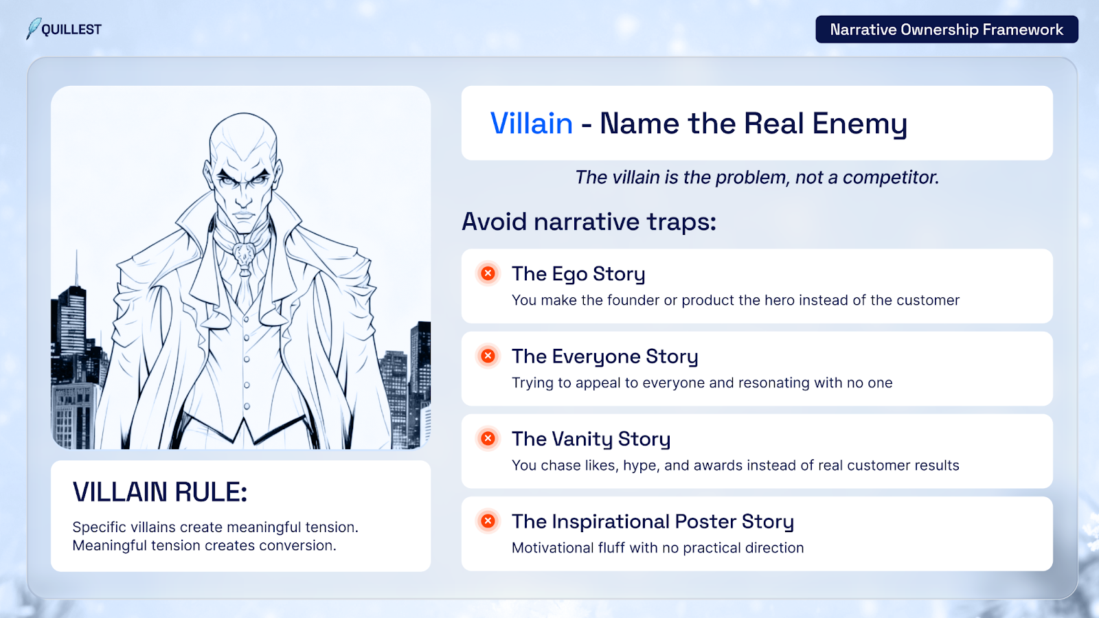 Naming the villain is powerful because it gives your story urgency and clarity. It shows your users that you truly understand what they’re struggling with. Without a clearly defined villain, your brand narrative has no stakes and no proof that you’re the right solution for them to choose.